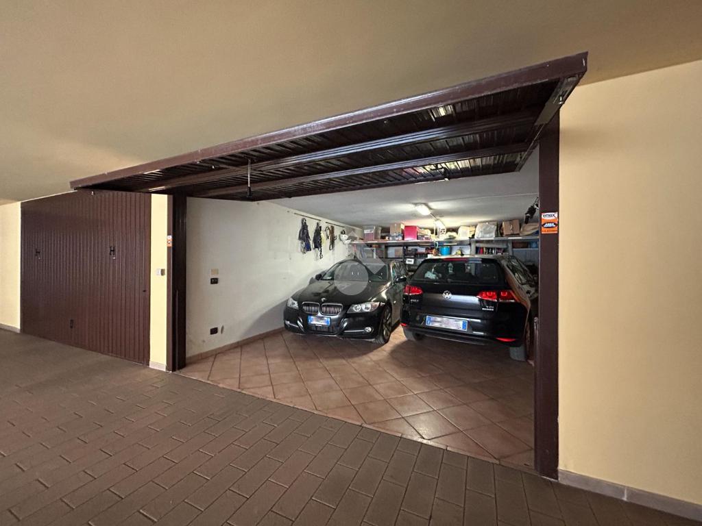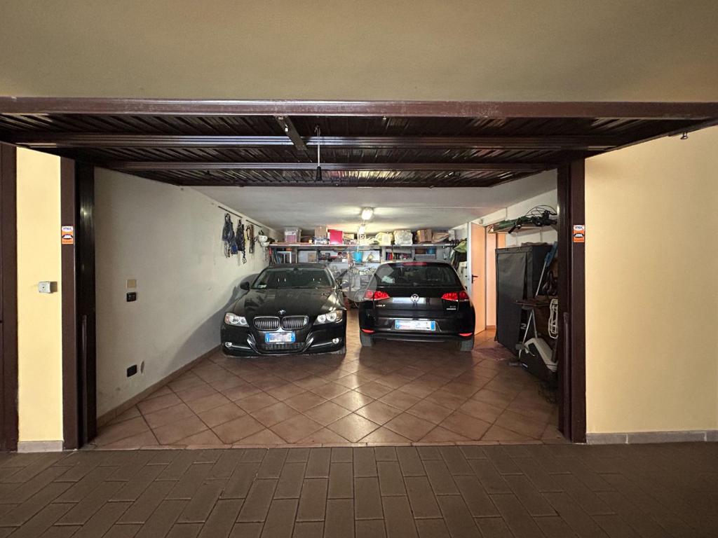 Il piano interrato ospita un’ampia taverna con camino, bagno/lavanderia, ripostiglio e collegamento diretto al garage doppio in larghezza, ideale per comfort e praticità.