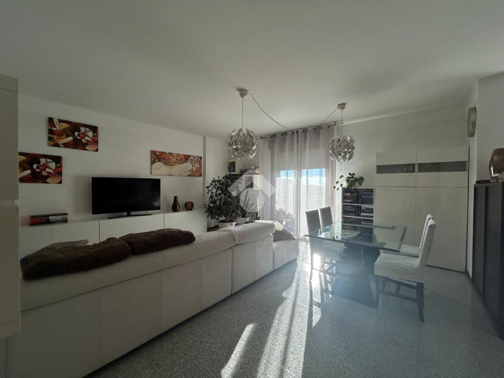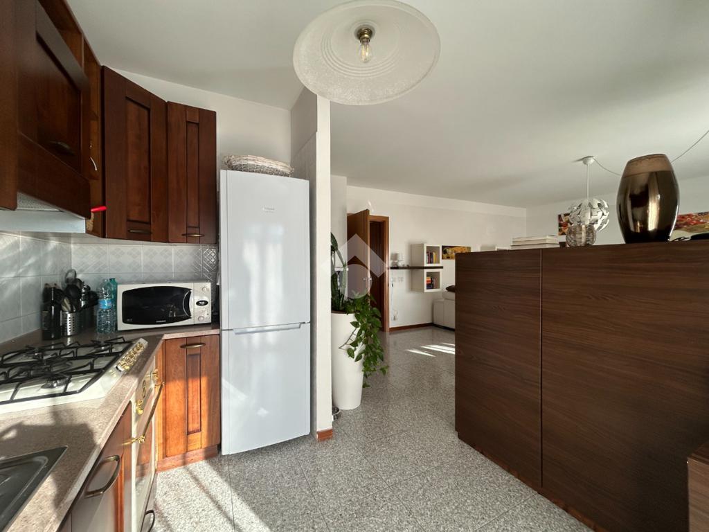 L’abitazione si compone di ingresso, luminoso soggiorno e cucina con affaccio diretto sul terrazzo, due camere matrimoniali, una camera singola, due bagni ed un pratico ripostiglio.